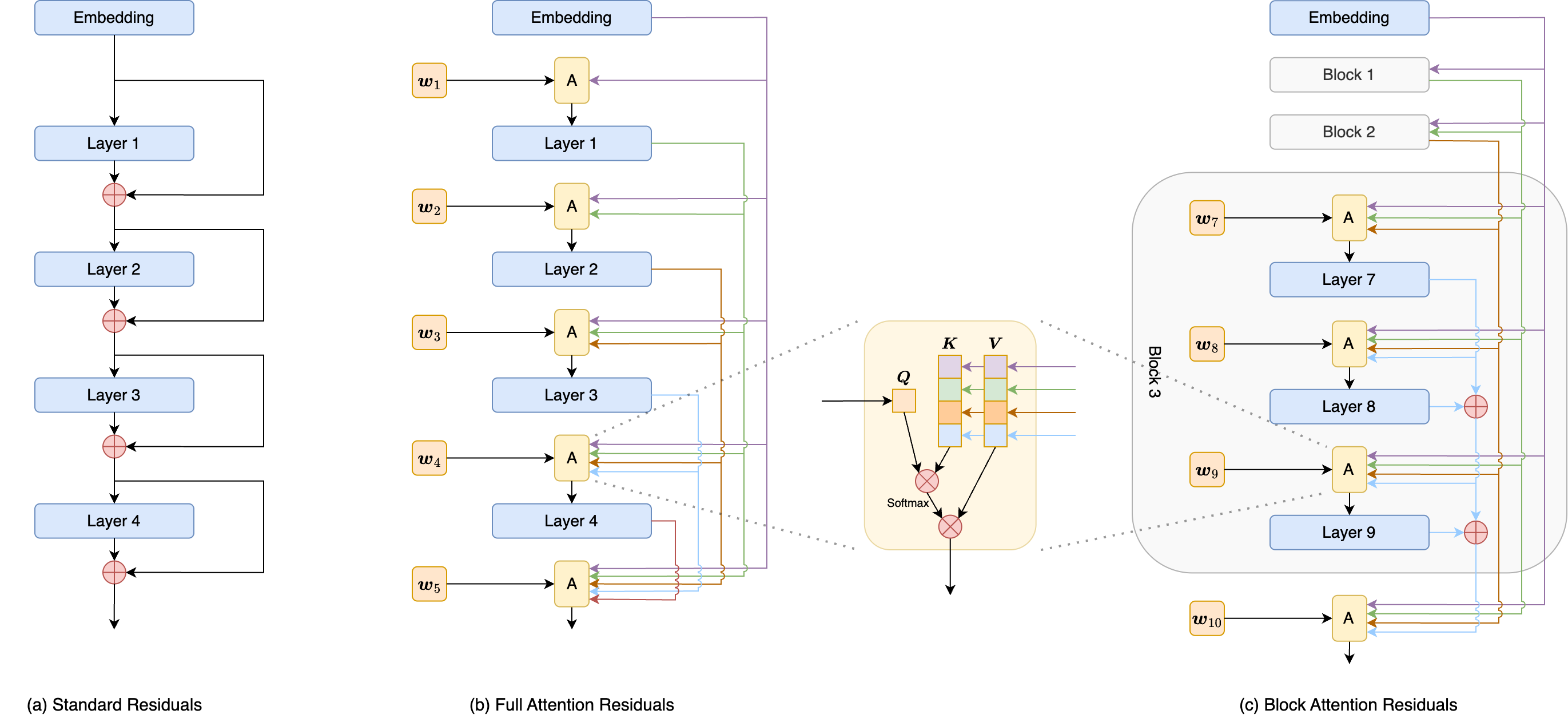 相比于进一步扩大残差流,我们选择了另一条激进的路线:直接在层间做Attention来替代Residuals。当然,全流程走通还是有很多细节和工作的,这里就简单回忆一下相关的心路历程。