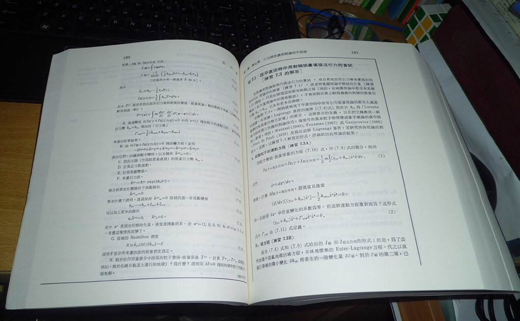 By 苏剑林 | 2013-06-27 | 64766位读者 |之前已经稍微提及到了MTW的《引力论》,这本由C.W.麦思纳(Charles W.Misner)、K.S.索恩(Kip S.Thorne)、J.A.惠勒(John Archibald Wheeler)联合编写的广义相对论教材,被誉为引力中的“《圣经》”。自从我看到它的信息开始,我就一直对它念念不忘,一直希望能找到那本台湾翻译的中文版。无奈天朝的各种因素,让我难以如愿。通过翻墙到PChome的全球购物,结合各种手段,我终于买到了这本《圣经》!