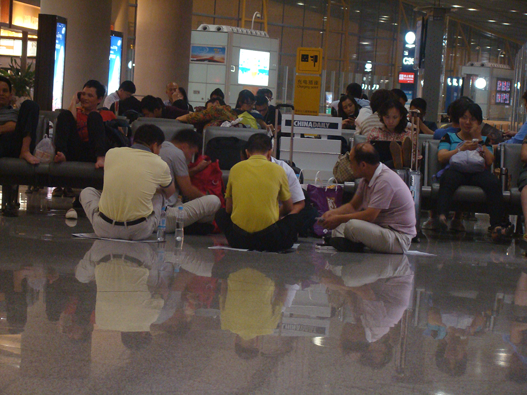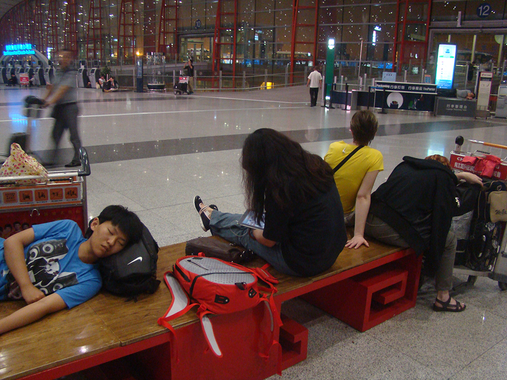 按照计划,我是昨晚9点的飞机,今天凌晨应该可以到广州。我七点多到机场,八点左右就办完了登记手续,然而,我们等了两三个钟,最终得到的结果是:由于雷暴雨的影响(北京并没有下雨,估计是途中某个地方的上空天气太糟糕),该航班取消,补到第二天七点......这对我来说可真是个大考验。虽说航空公司会为我们联系宾馆,但是效率之低让不少人在机场抗议,于是乎冰冷的机场一下子就热闹起来的(取消的不知我们一趟航班,还有很多其他航班)。而我虽然来过好几次北京,毕竟还属于“异客”,自然经验不足,但我做出了一个很大胆的决定:在机场过夜!