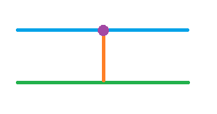 接下来,我们过紫色点,作一条直线(下面的蓝色线),垂直于上一步作出来的橙色线。