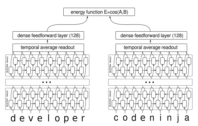 在我搜索到的资料中,深度学习做句子相似度模型,就只有两种做法:一是输入一对句子,然后输出一个0/1标签代表相似程度,也就是视为一个二分类问题,比如《Learning Text Similarity with Siamese Recurrent Networks》中的模型是这样的