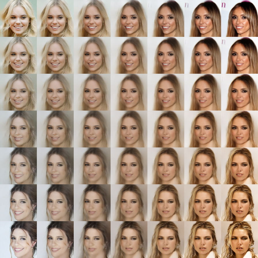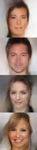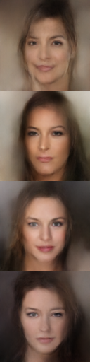对比VAEs和f-VAEs的结果,我们可以认为f-VAEs已经基本解决了VAEs的模糊问题。对比同样规模下的Glow和f-VAEs,我们发现f-VAEs在同样的epoch下表现得更好。当然,我们不怀疑Glow在更深的时候也表现得很好甚至更好,但很明显,在同样的复杂度和同样的训练时间下,f-VAEs有着更好的表现。
