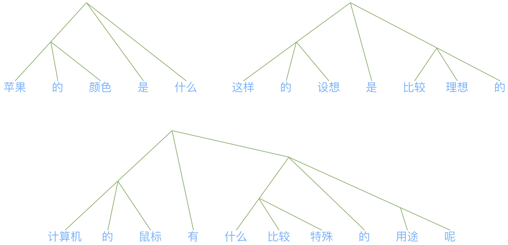 有相关背景的读者应该知道,跟分词类似,其实在有了相关矩阵之后,句法分析其实也是一件水到渠成的事情罢了。当然,由于这里的句法分析是无监督的,所以它只能想办法析出句子的层次结构(句法树)出来,无法像有监督的句法分析一样,贴上人为定义的句法结构标签。