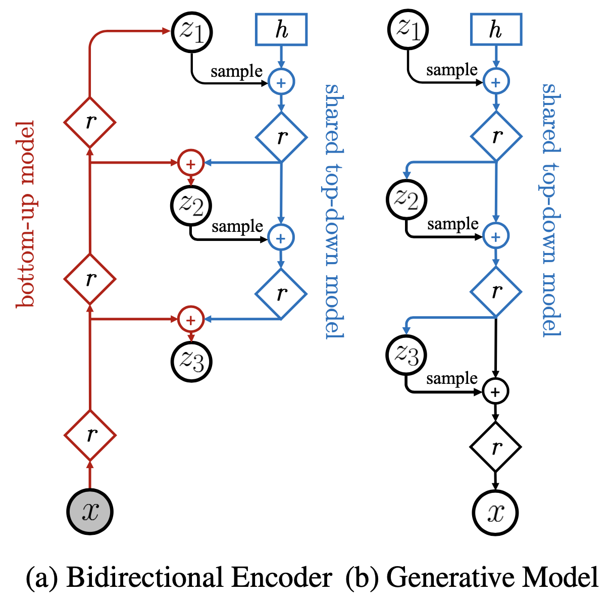 现在隐变量分成了$L$组$z=\{z_1,z_2,\dots,z_L\}$,那么问题就来了:1、编码器如何一一生成$z_1,z_2,\dots,z_L$?2、解码器如何一一利用$z_1,z_2,\dots,z_L$?也就是说,编码器和解码器如何设计?